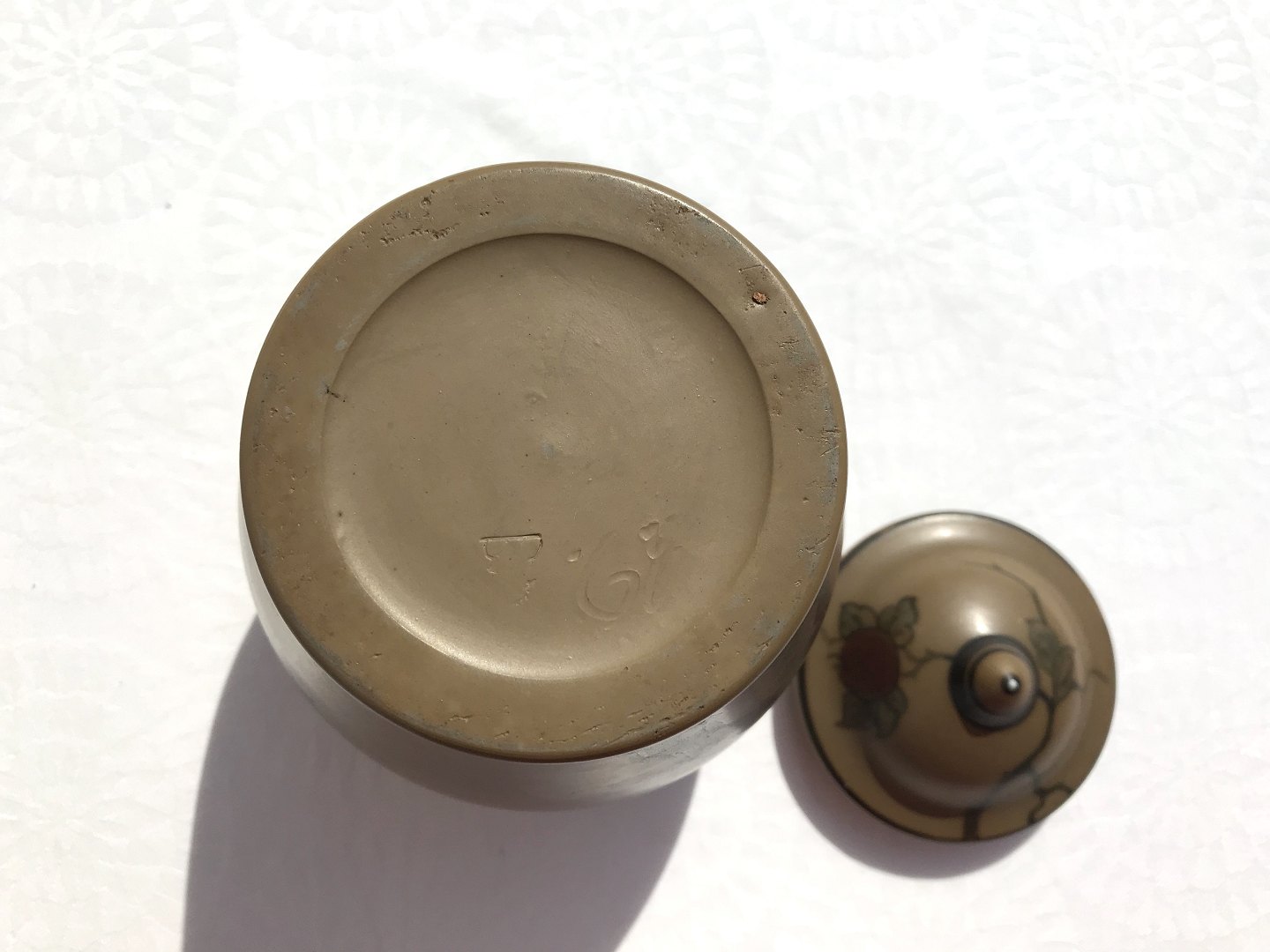 | Bornholmsk keramik, Hjorth, Brun stentøj, Nr.64, Lågkrukke med frugtdekoration, 18cm høj, ca.13 cm i diameter *Pæn stand*