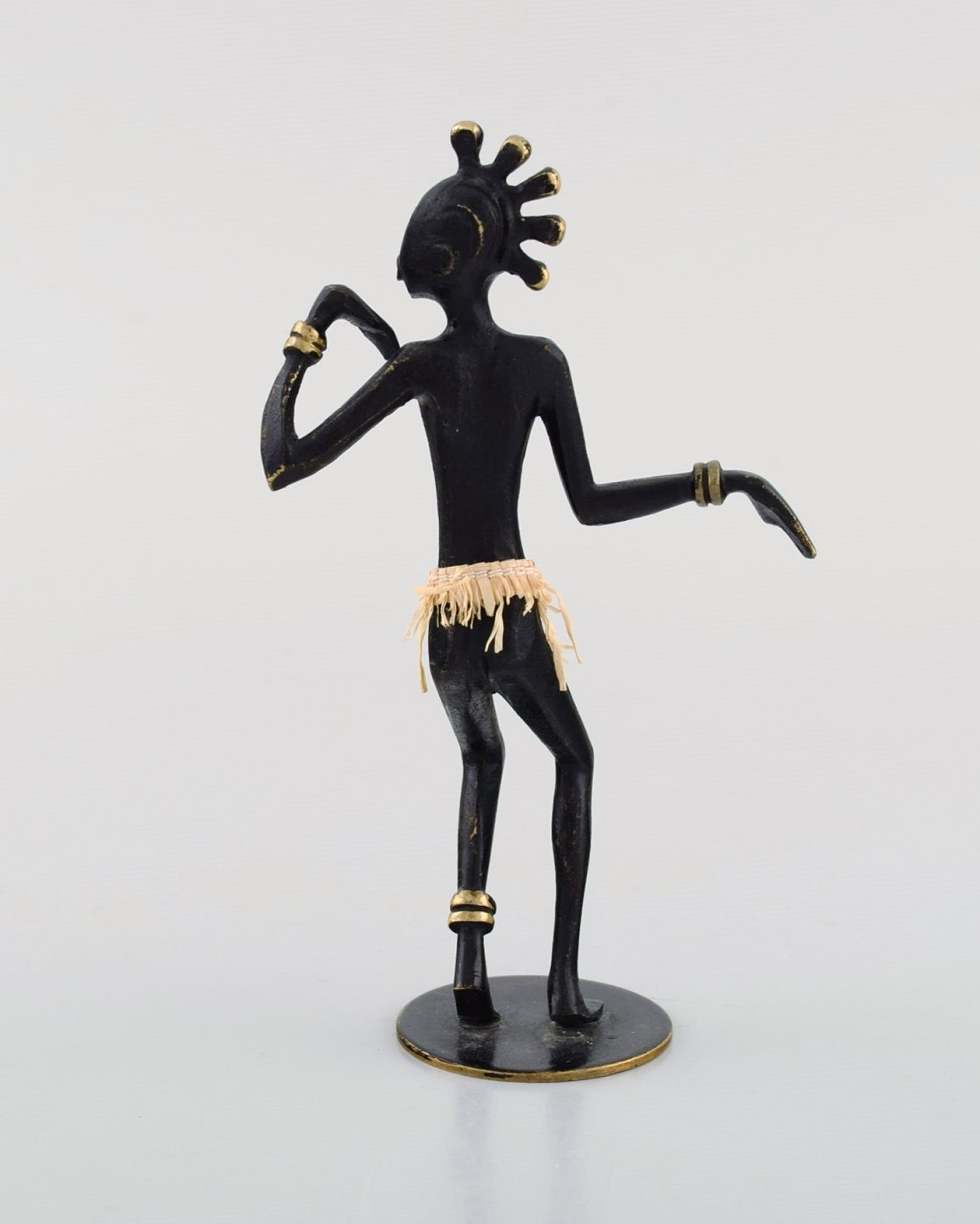 Karl Weiler, Pforzheim, Tyskland. Nøgen "Negresse" skulptur i bronze med skørt i bast. 1940'erne.