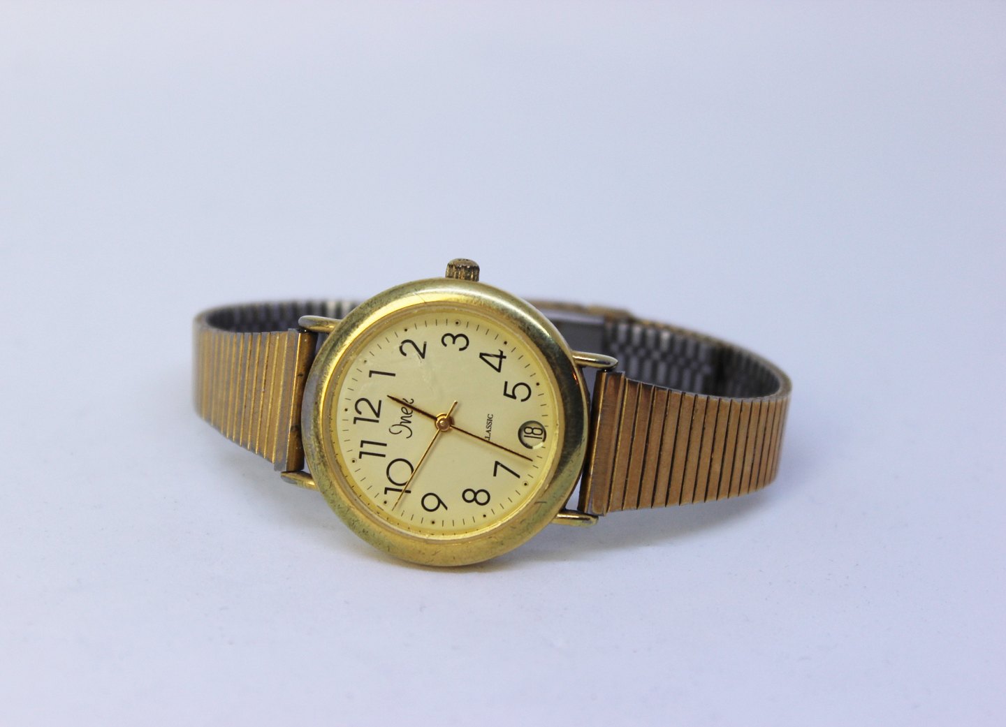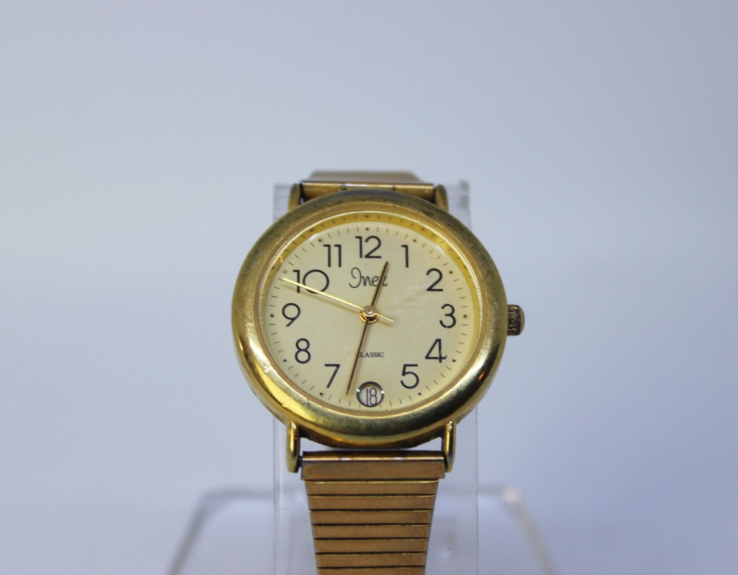 Inex forgyldt dameur med quartz. Uret er af rustfrit stål, med dato og vandtæt 30M. Model nummer: 95562.