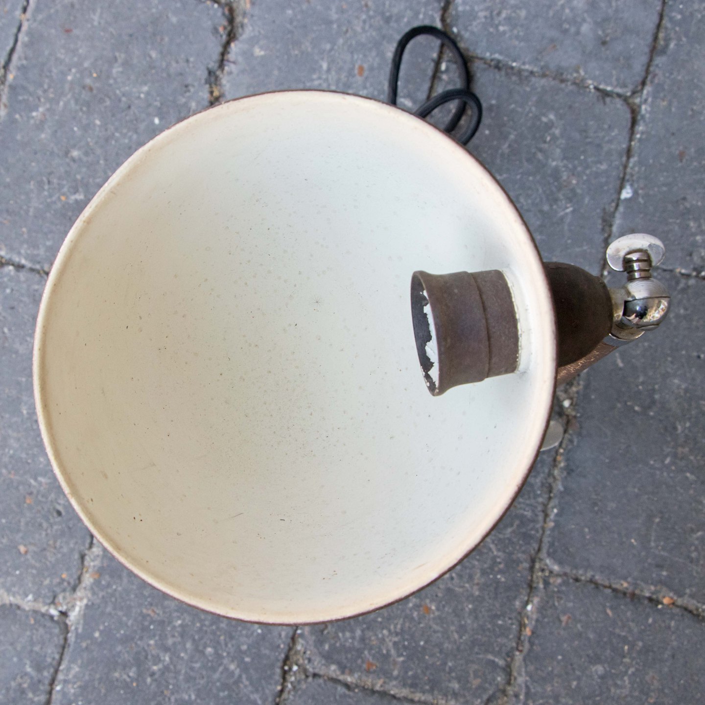 Lampen er regulerbar med krakkeleret brunlakeret overflade og stabil fod.