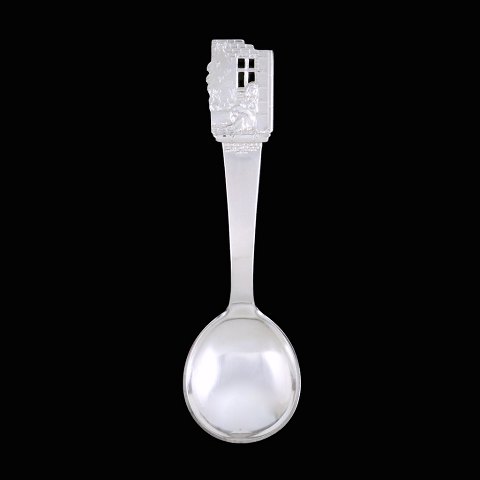 H.C. Andersen Eventyrbestik. 'Den Lille Pige Med Svovlstikkerne'. Rund barne/dessertske i sølv med motiv fra H.C. Andersens eventyr. L. 14,5 cm.