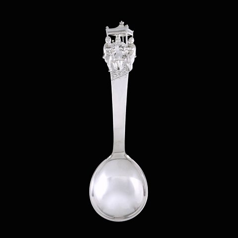 H.C. Andersen Eventyrbestik. 'Kejserens nye klæder'. Rund barne/dessert i sølv med motiv fra H.C. Andersens eventyr. L. 14,5 cm.