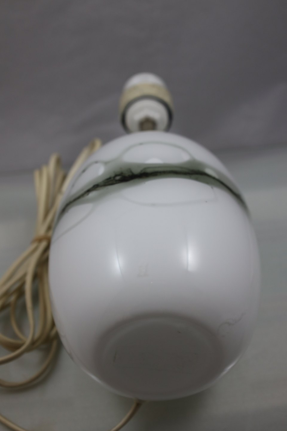 Holmegaard Glasværk. Bordlampe Sukura, oval fod. Lampen er af hvidt opalglas med grå bemaling