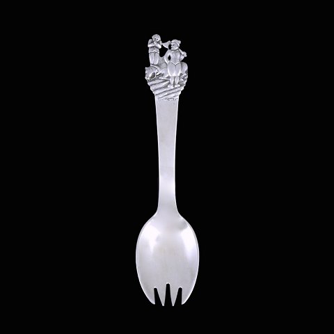 H.C. Andersen Eventyrbestik. 'Lille Claus og Store Claus'. Skegaffel i sølv med motiv fra H.C. Andersens eventyr. L. 14,2 cm.