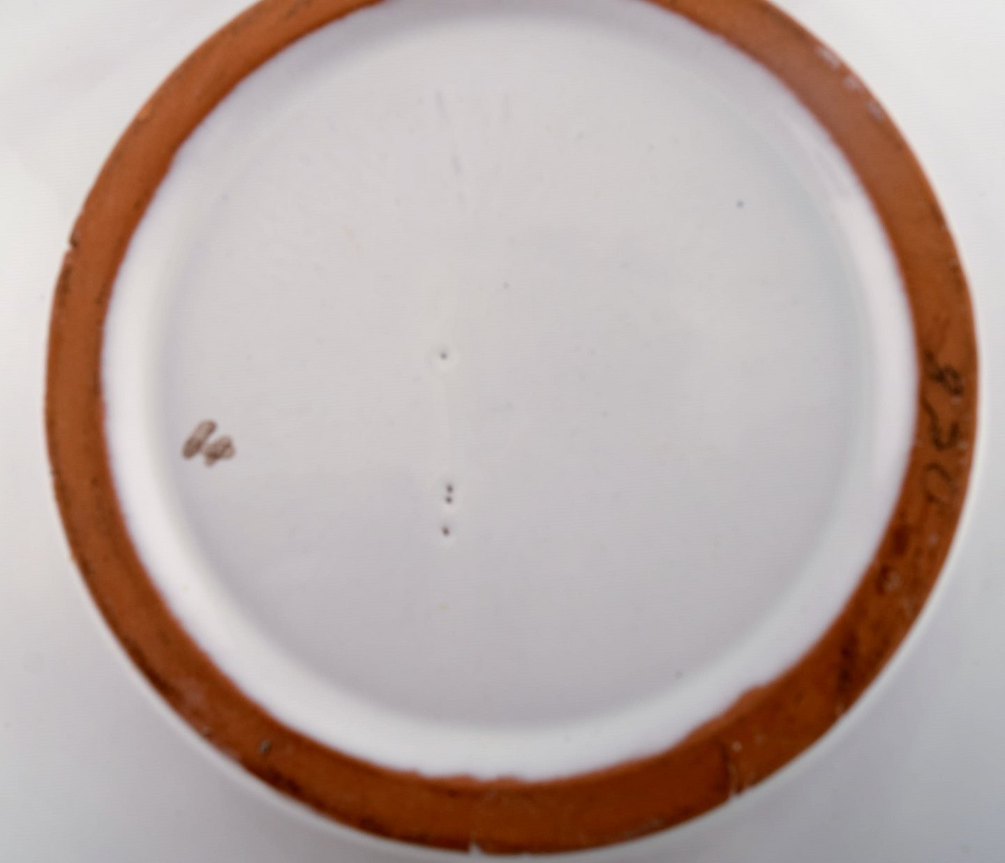 Ingrid Atterberg for Upsala Ekeby. Stor skål i glaseret stentøj. Stribet design i blå og lyserøde nuancer. Dateret 1951-52.