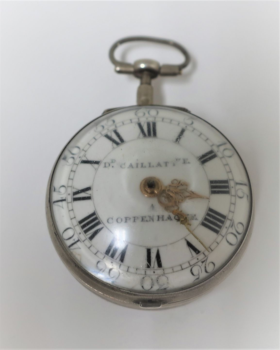 David Caillatte, København. Født 1727- død 1794. Sølv lommeur. Uret virker. Nøgle til optræk medfølger.