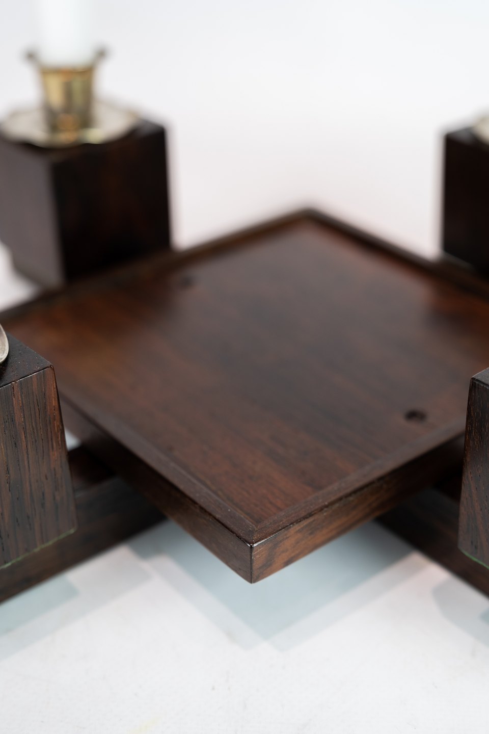 Lysestage med plads til fire lys, i palisander af dansk design fra 1960erne.