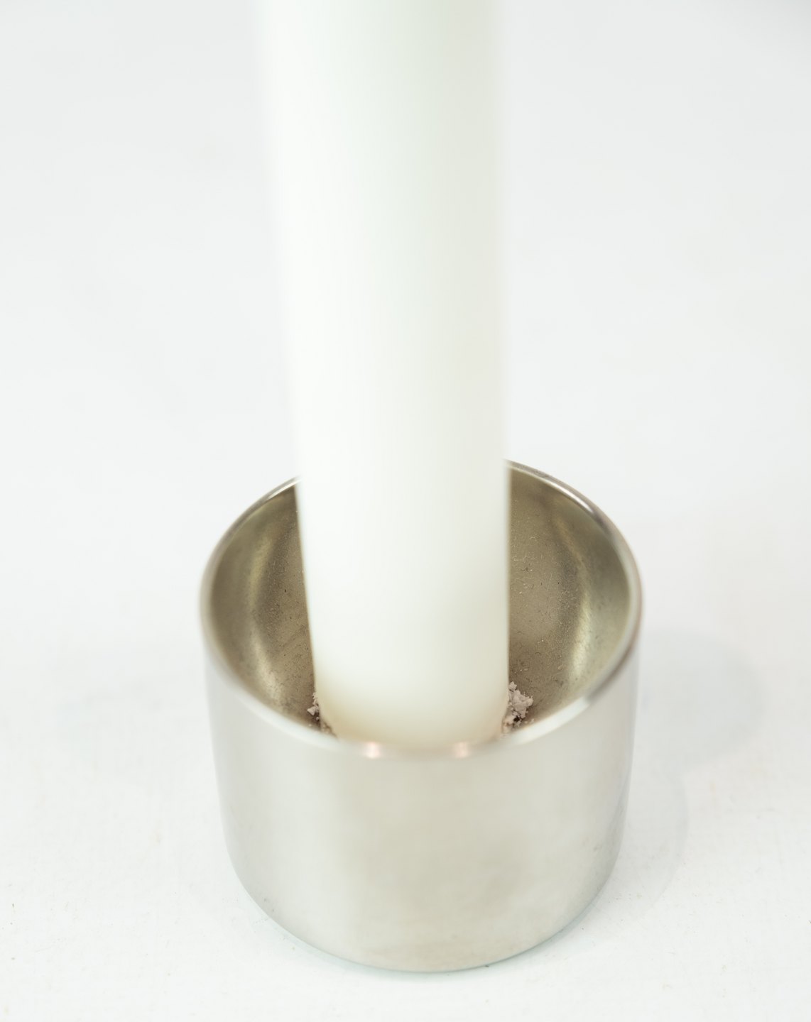 Et sæt lave lysestager af aluminium, stemplet BRF.