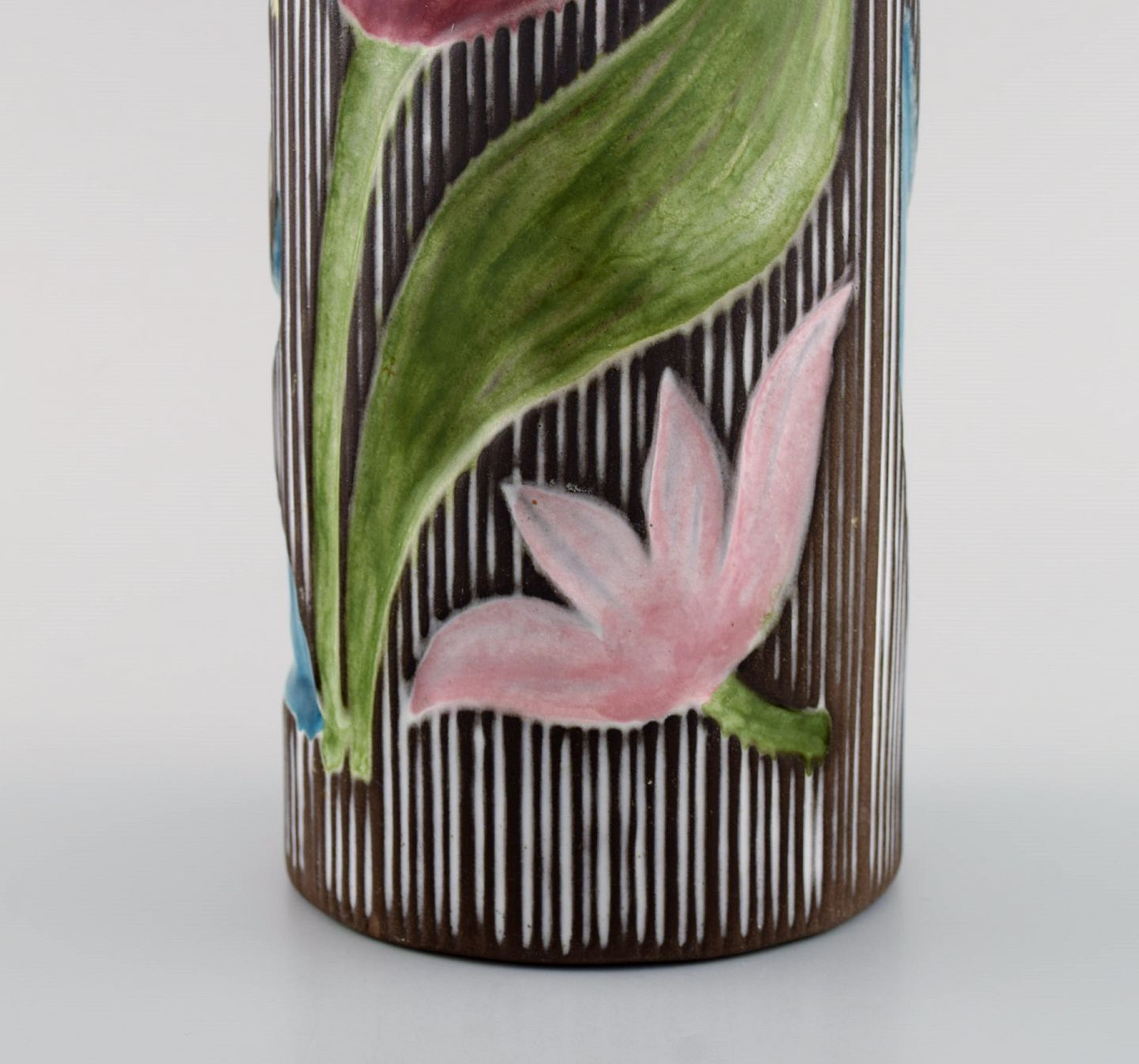 Mari Simmulson (1911-2000) for Upsala-Ekeby. Vase i glaseret keramik med blomsterdekoration. Midt 1900-tallet.