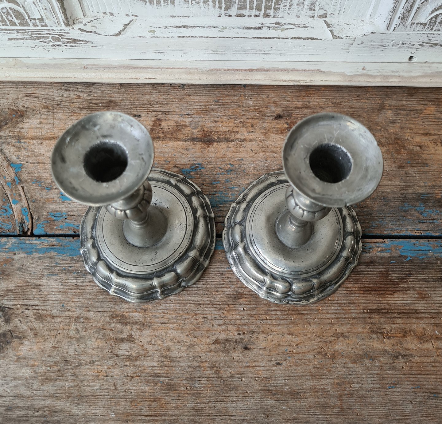 Par smukke tin lysestager fra midten af 1700 tallet - rokoko form