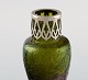 Pallme-König art nouveau vase i grønt mundblæst kunstglas med sølvmontering. Ca. 1900.