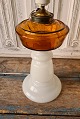 1800tals opaline lampe med oliebeholder i rav farvet glas