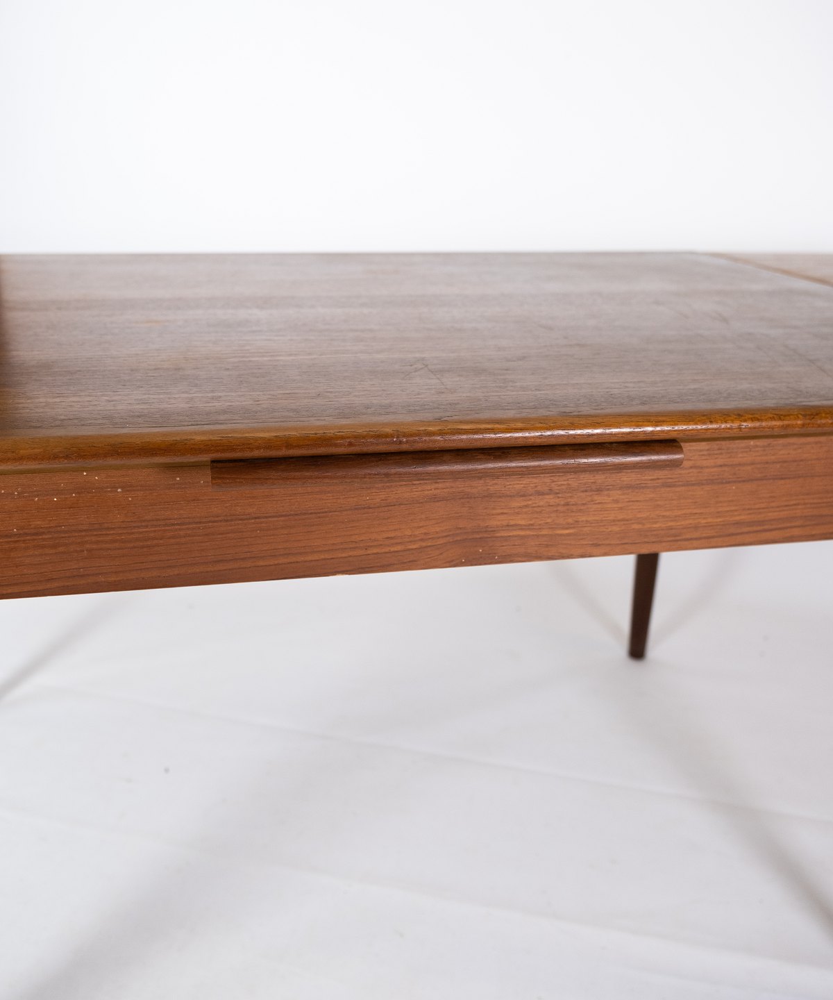 Spisebord i teak med hollandsk udtræk af dansk design fra 1960erne. Bordet er i flot brugt stand.