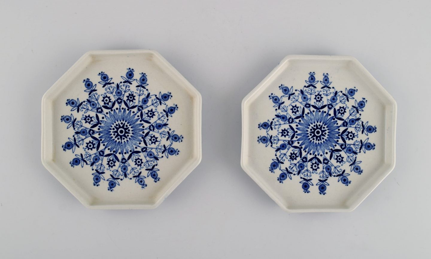 Arabia, Finland. To lysestager, to fade, to tedåser og kande i glaseret stentøj. Retro, 1960/70'erne.