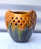Michael Andersen, Bornholm. Vase/krukke i keramik, med gennembrudt kant. På siderne er der modelleret et firben. Vasen/krukken er med løbeglasur.