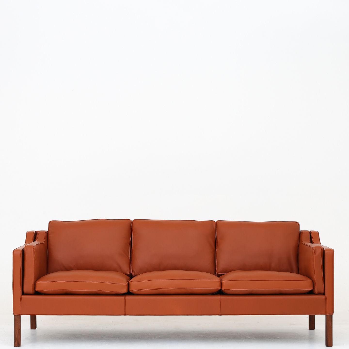 BM 2213 - Nybetrukket 3 pers. sofa i Passion-læder (farve: Burn, 33508) med mørke ben.