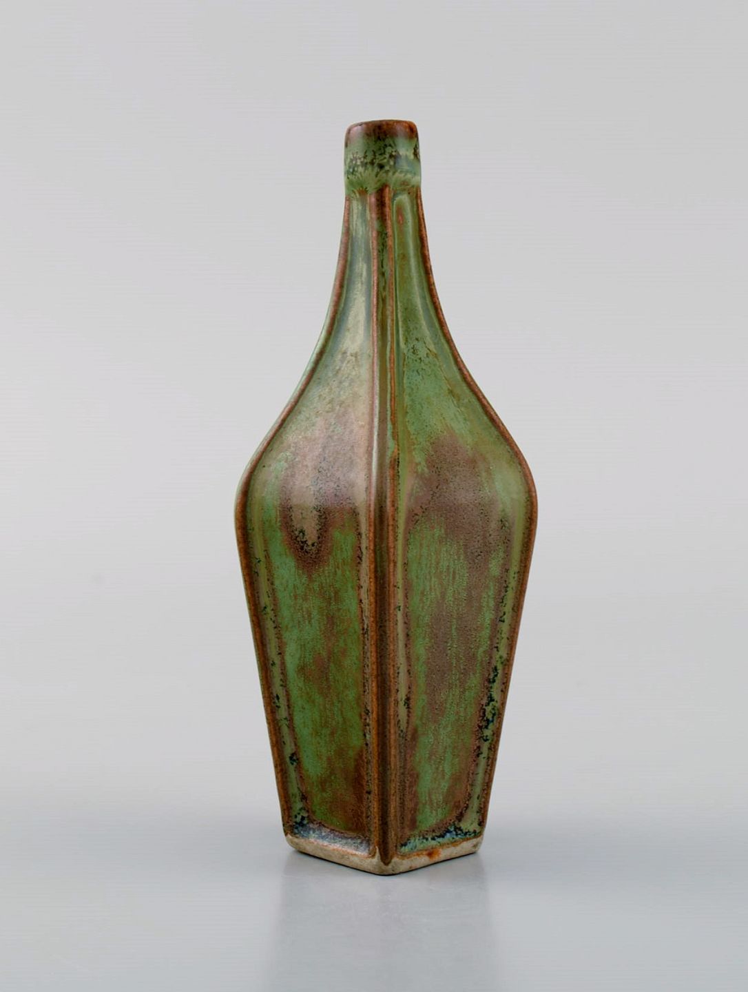 Tre belgiske miniature vaser i glaseret keramik. Midt 1900-tallet. Største måler: 12,2 x 5,5 cm.