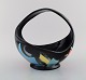 Longwy, Frankrig. Equinoxe kurv i glaseret keramik. Abstrakt polykrom dekoration på sort baggrund. Midt 1900-tallet.