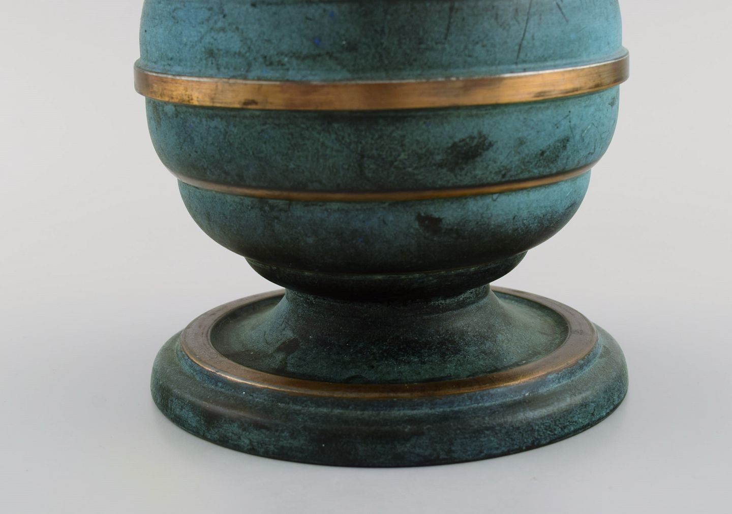 Art deco bordlampe i grønpatineret metal. 1930/40'erne.
