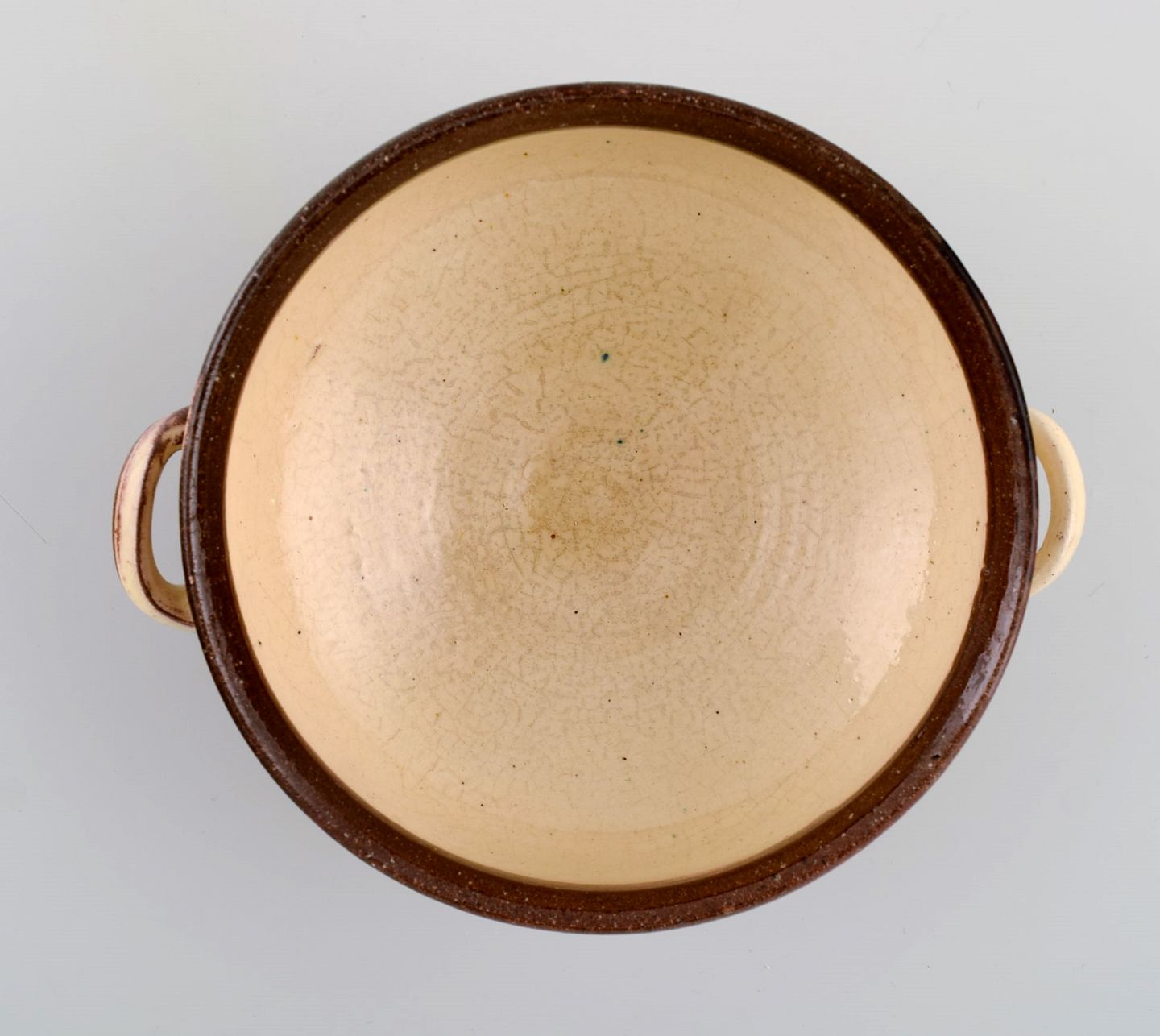 Gutte Eriksen (1918-2008), own workshop. Ear bowl with handles in glazed stoneware. Danish design, mid 20th century.