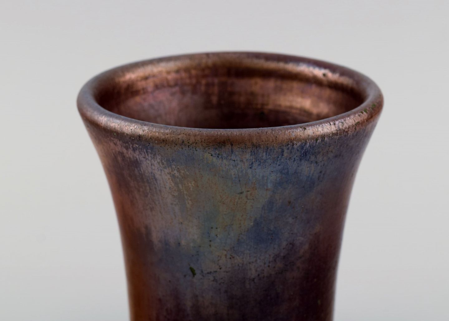 Søren Kongstrand (1872-1951), Danmark. Vase i glaseret stentøj. Smuk metallisk lustreglasur i røde nuancer. 1920'erne.