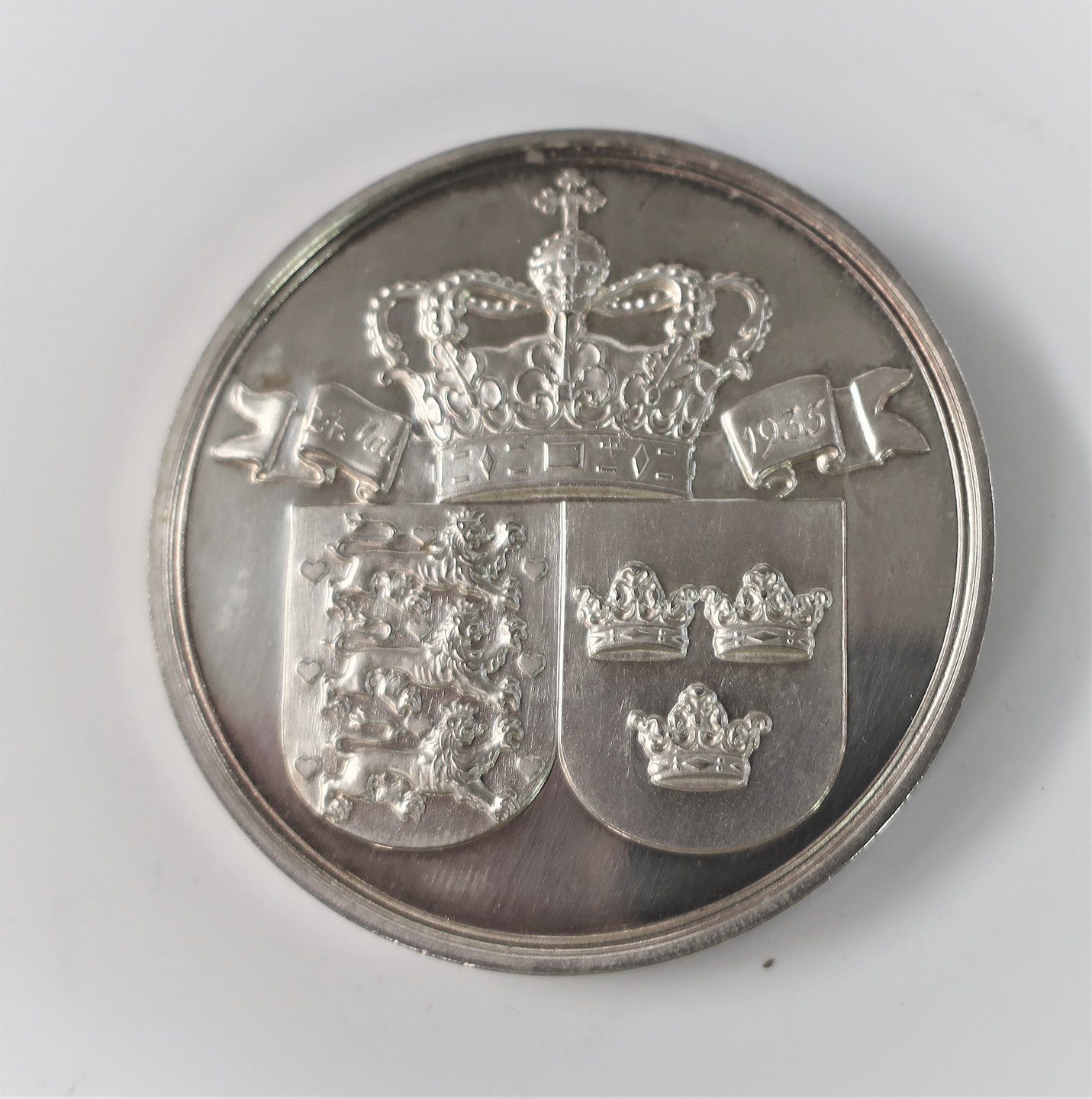 Kronprins Frederik og kronprinsesse Ingrids bryllup 24 maj 1935. Stor sølvmedalje. Diameter 55 mm.