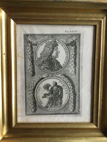 Fransk kobberstik af Alain Manesson Mallet - Medalje Ludvig XIV.