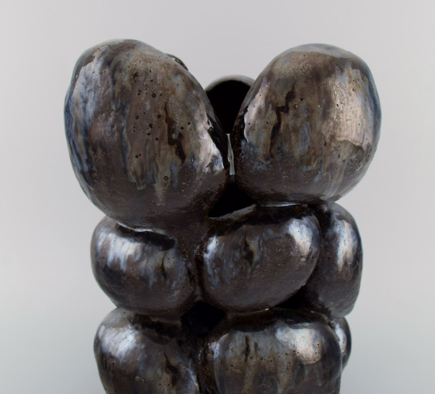 Christina Muff, dansk samtidskeramiker (f. 1971). Stor skulpturel unika vase i glaseret stentøj. Smuk sort metallisk glasur.