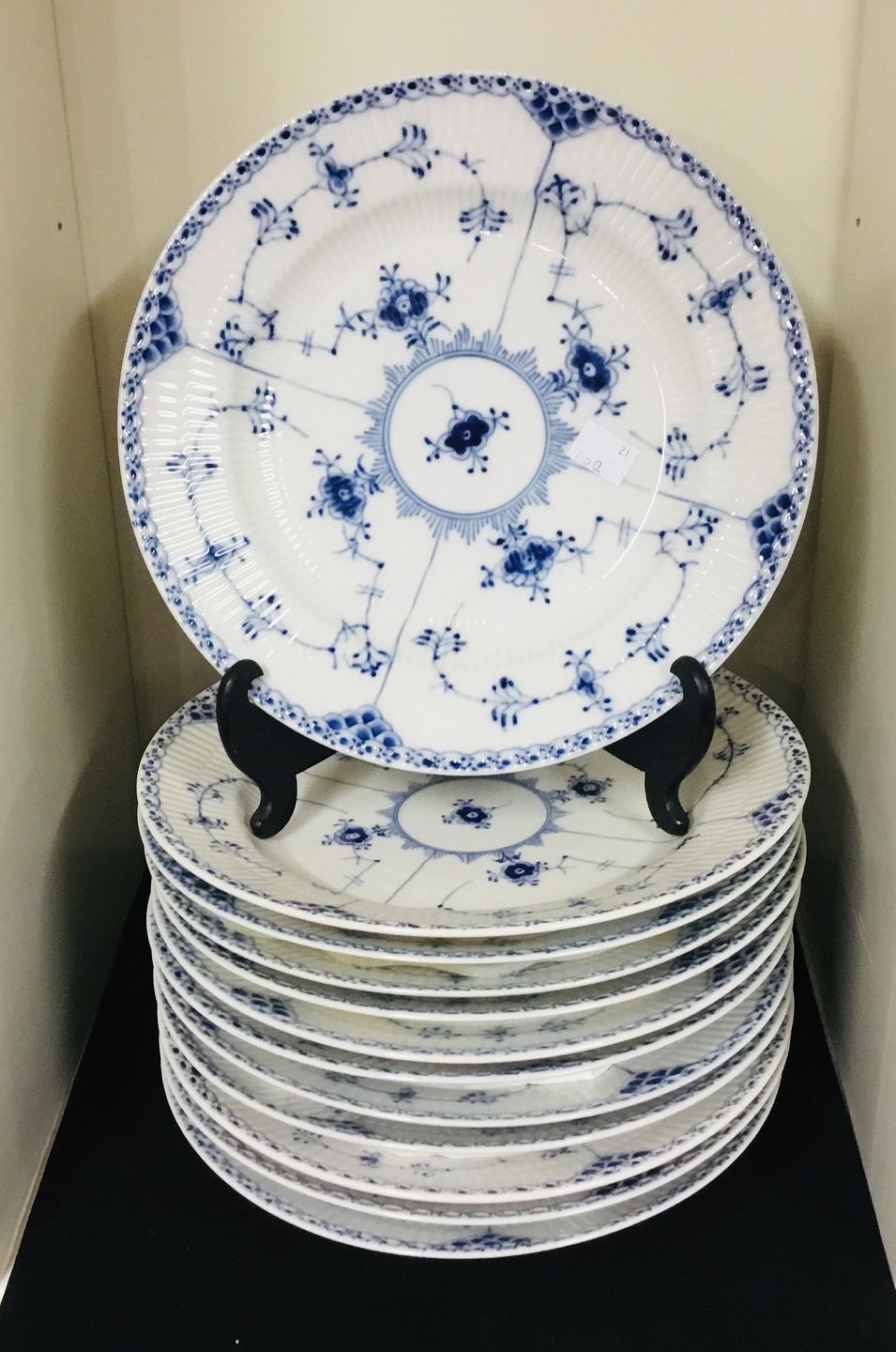 Royal Copenhagen, Musselmalet halvblonde middagstallerken 25,5 cm 12 stk på lager