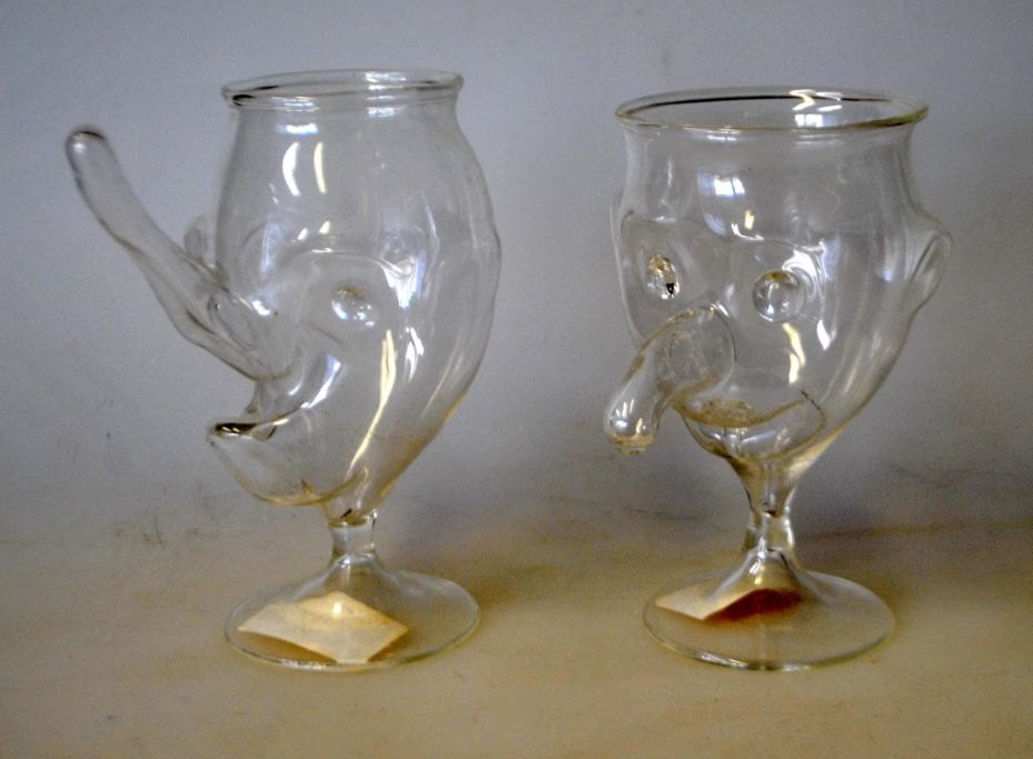 Et par italienske drikkeglas i form af ansigter med næser, 20. årh.