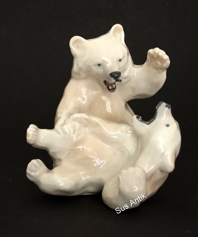 Royal Copenhagen, Legende isbjørneunger. Formgivet af Knud Kyhn. Højde 14 cm. Nr. 1107. Medarbejdersortering III. Den liggende unge har en gul tå, antagelig repareret. Pris: 475 kr.