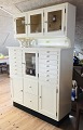 Antik Tandlægeskab i fin stand med 14 små skuffer og facetslebet glas i låger, glashylder og med hvidt glas i bunden af skuffer.