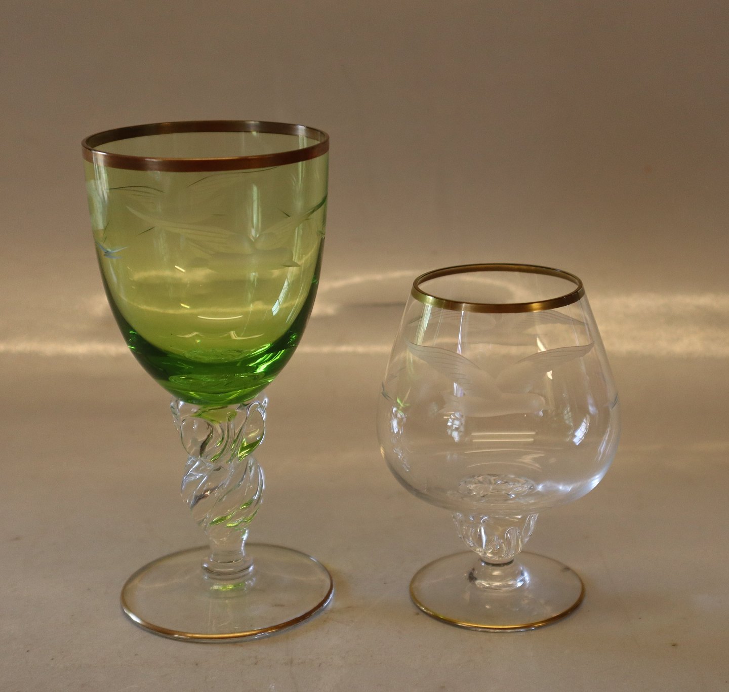 Lyngby Cognac 9 cm. Mågeglas Lyngby glasservicce - drikkeglas med guldkant og slebne måger - slebet glas