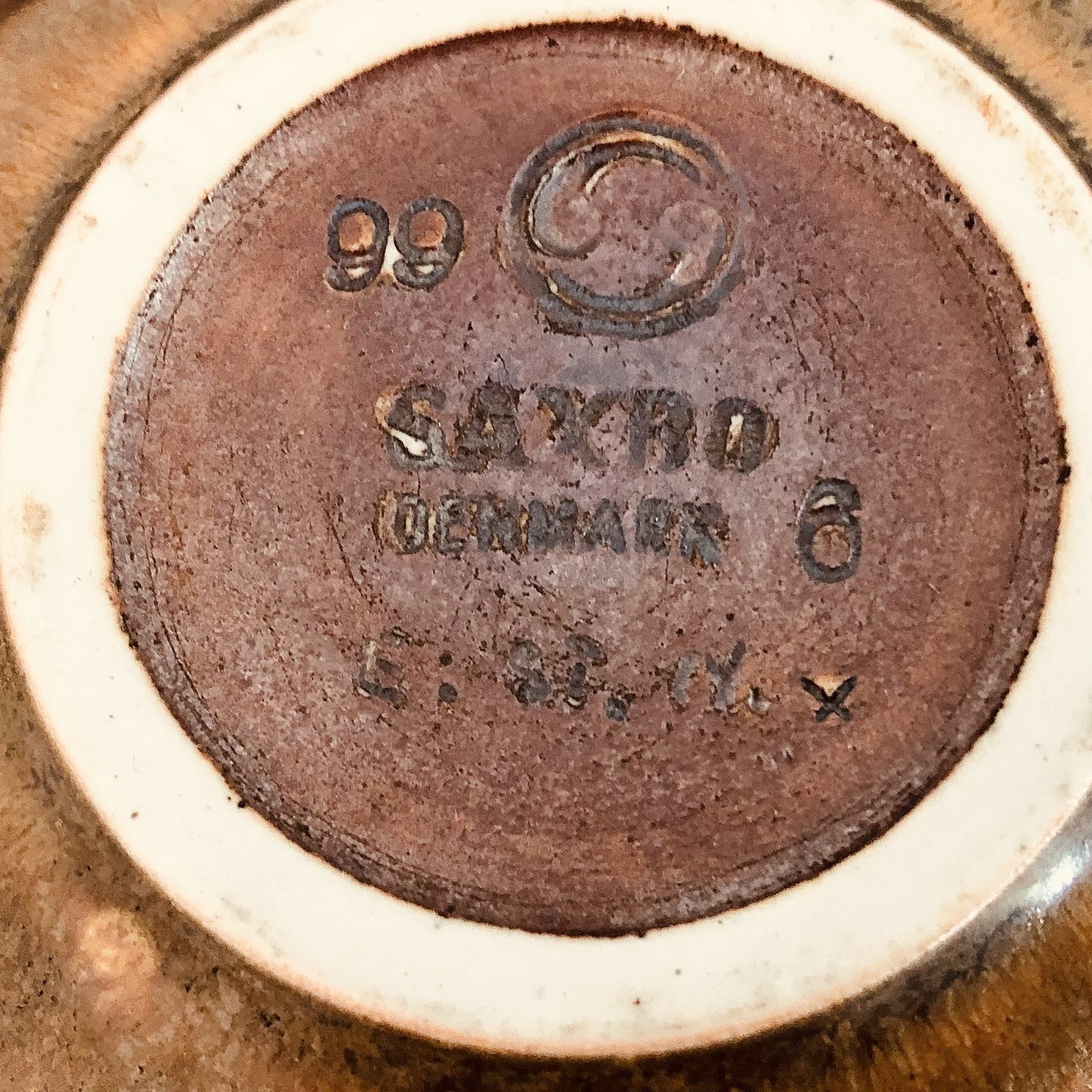 Skål af stentøj med changerende brune nuancer glasur (harepelsglasur).