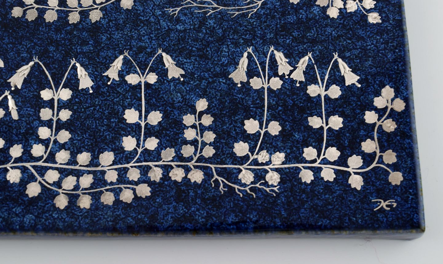 Heinz Erret (1920-2003) for Gustavsberg. "Linea" vægplakette i glaseret keramik med sølvindlæg i form af blomster. 1970'erne.