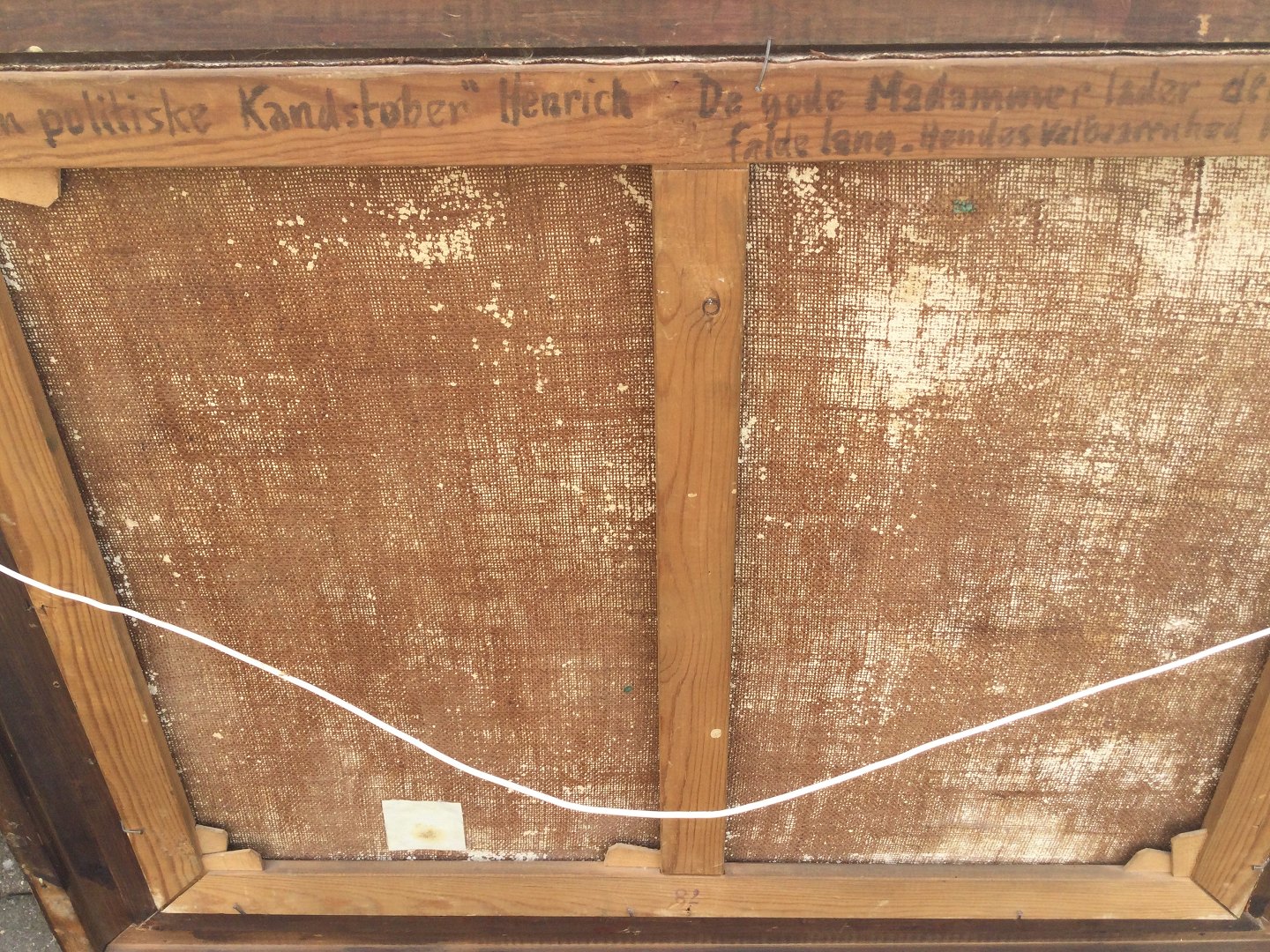 Maleri af Ludvig Jacobsen - "Scene 7 fra Den politiske Kandestøber" 1942 - Heinrich og 2 Raads-Herrinder.