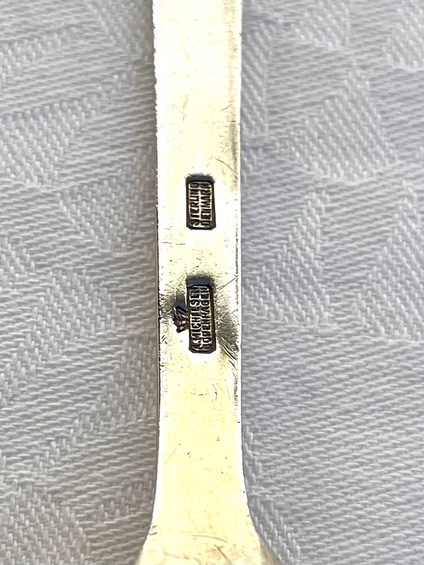 A. Michelsen. Mindeske i forgyldt sterling sølv. Udgivet i anledning af Kong Frederik d. IX's 50 års fødselsdag i 1949. Længde 16 cm. Design: Ibi Trier Mørch.