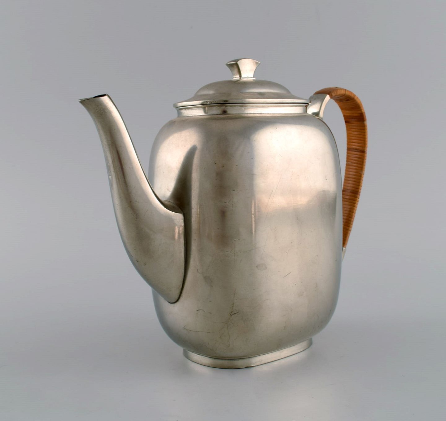 Just Andersen (1884-1943), Danmark. Art deco tin kaffekande med hank i flet. 1940'erne. Modelnummer 2421.