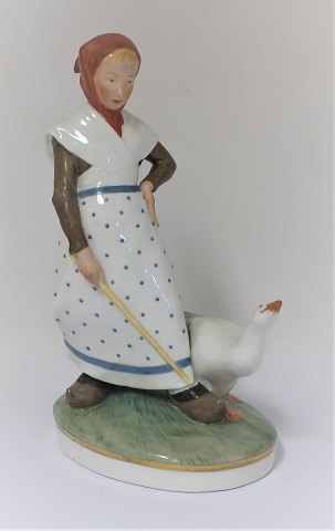 Royal Copenhagen. Porcelænsfigur. Gåsepige i farver. Model 528. Højde 18,5 cm. (1 sortering)