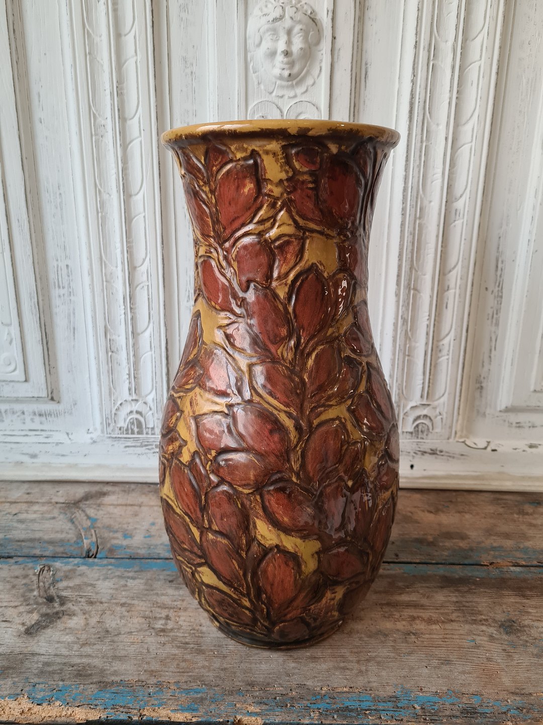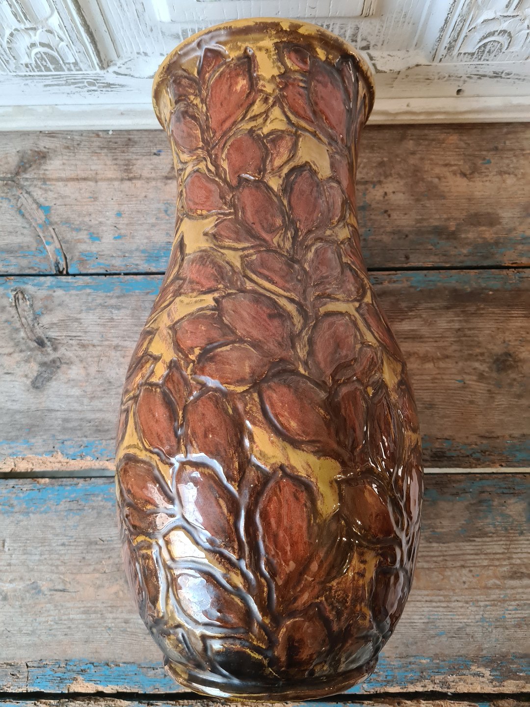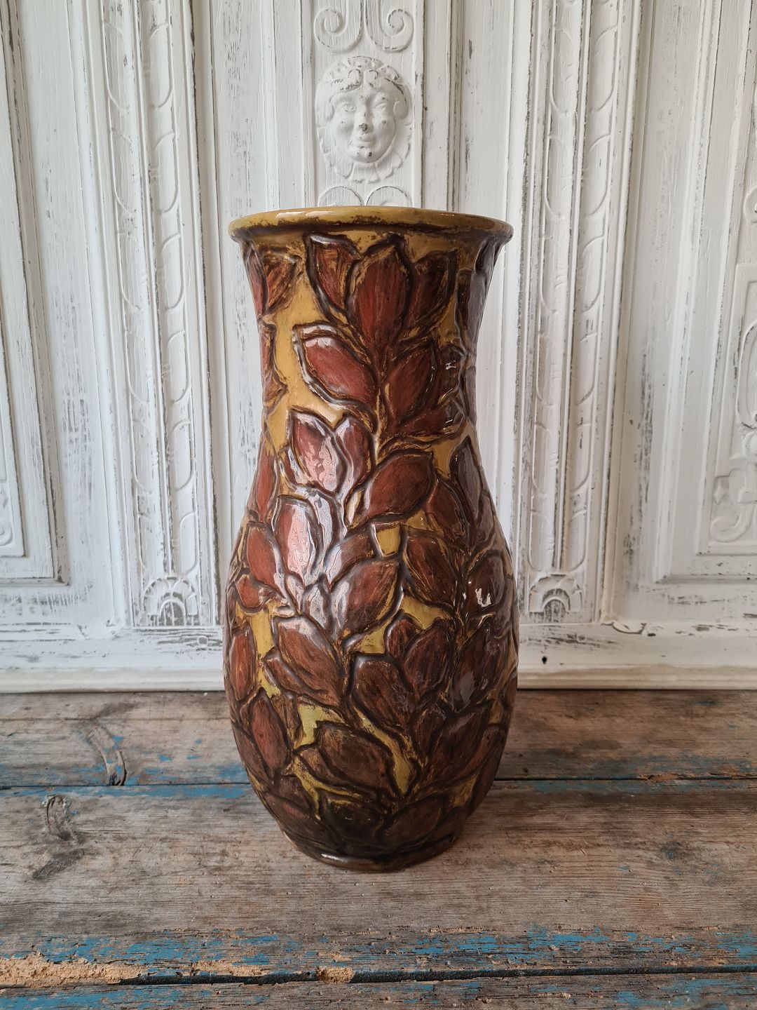 Svend Hammershøi for Kähler stor vase dekoreret med bladværk i relief Produceret mellem 1904-12
