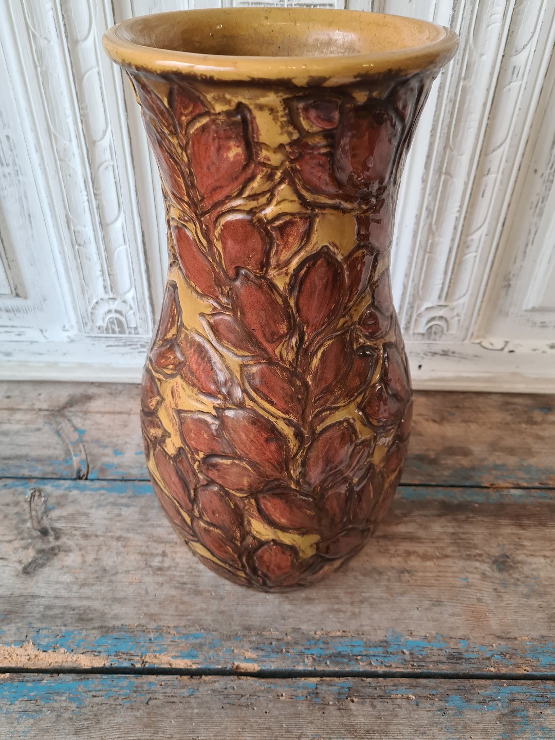 Svend Hammershøi for Kähler stor vase dekoreret med bladværk i relief 39,5 cm. Produceret mellem 1904-12