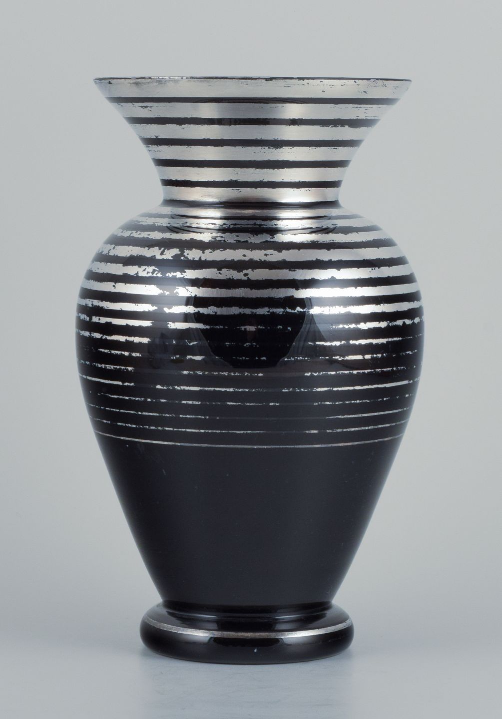 Stor Art Deco glasvase, Tyskland. Med horisontale sølvindlæg.