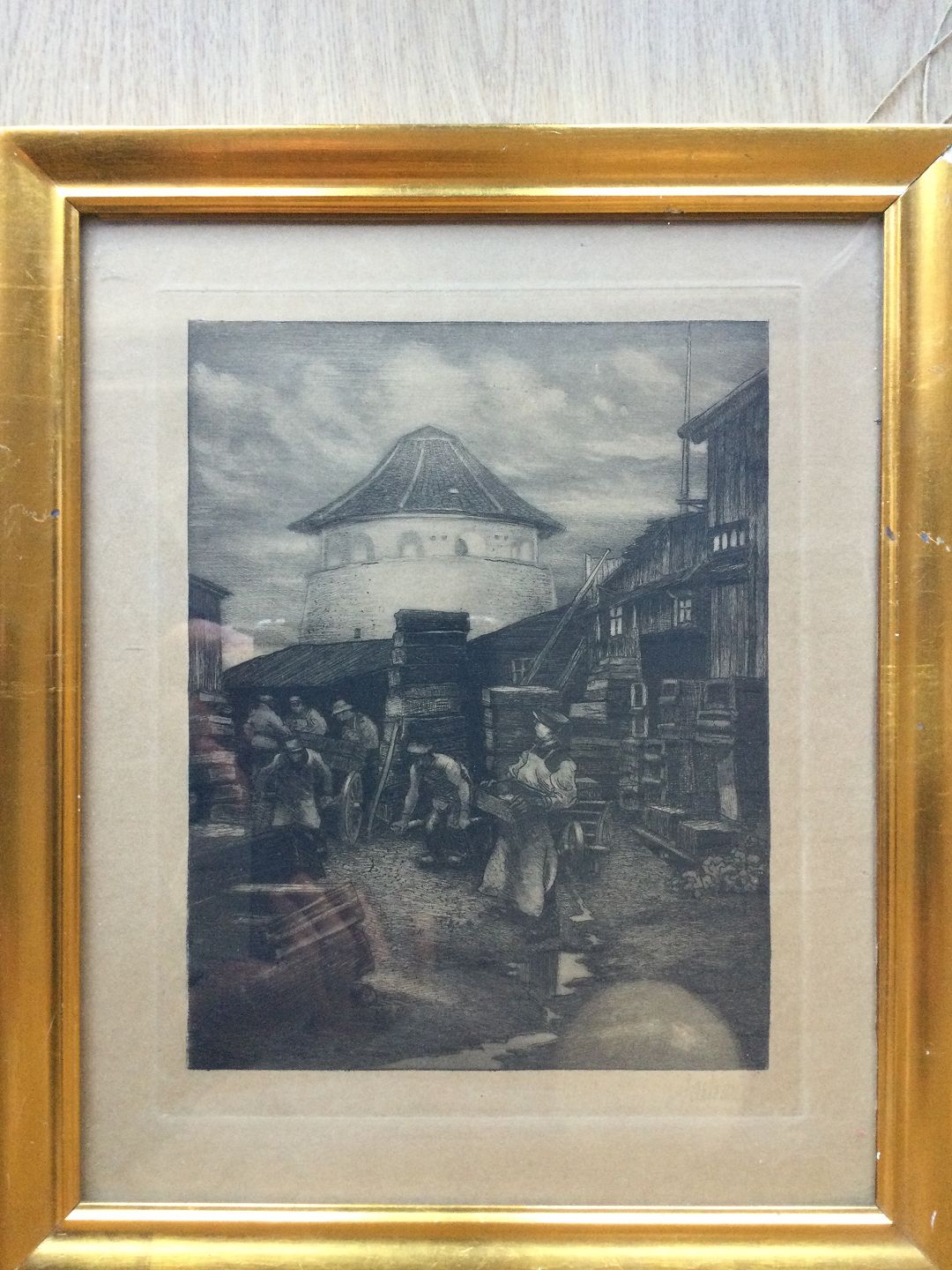 Radering af Viggo Jastrau - Krudttårnet i Frederikshavn 1911.