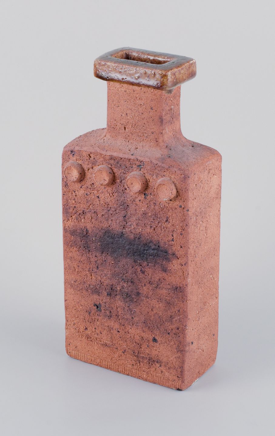 Curt Addin, eget værksted, svensk keramiker. Stor unika keramikvase i modernistisk og stilrent design. Chamotte-ler.