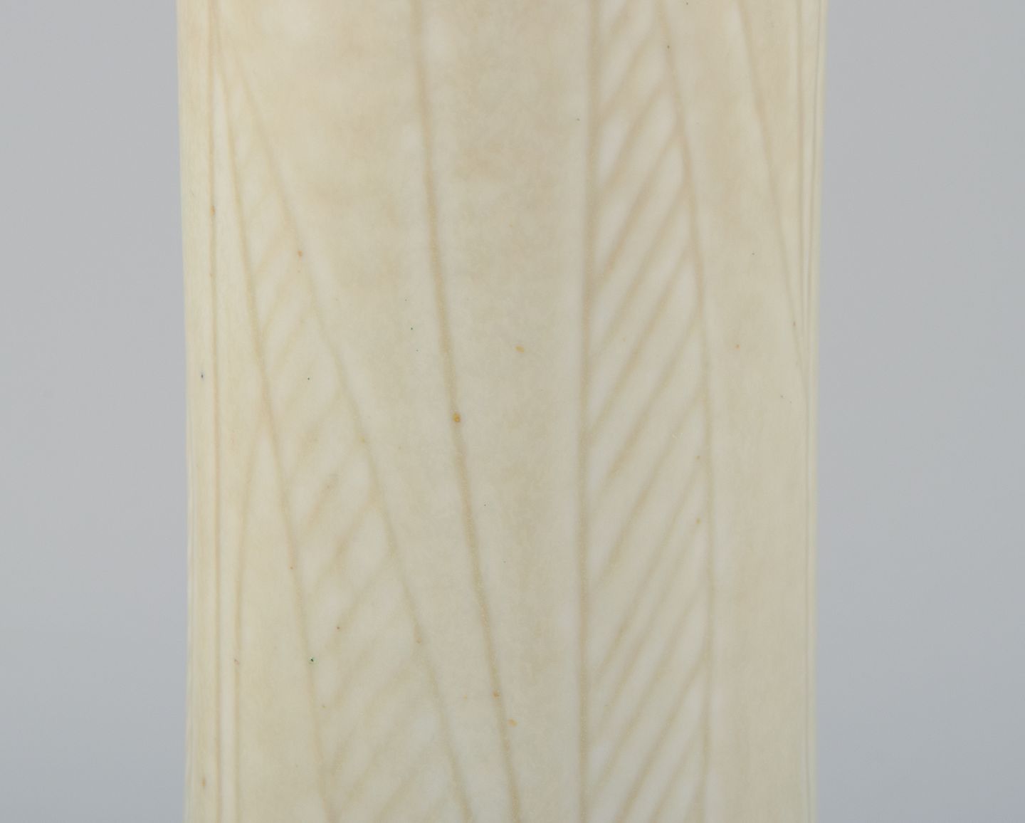 Carl Harry Stålhane for Rörstrand, høj og slank keramikvase. Dekoreret med geometrisk mønster. Cremefarvet glasur.