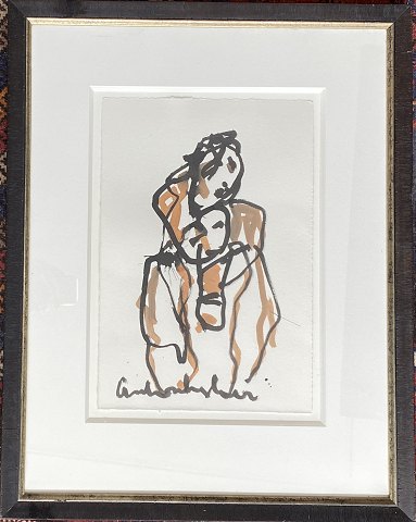 Akvarel på håndgjort papir opsat svævende med en meget kraftig paspartout og indrammet i en smuk sortbejset træramme med håndforsølvet kant. Indramningen er udført i Holland stempel bagpå.
