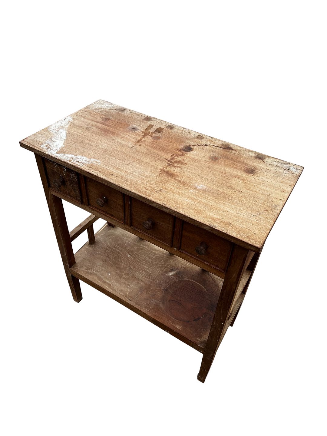Konsol bord i egetræ med 4 skuffer og små runde håndtag fra år 1920'erne.