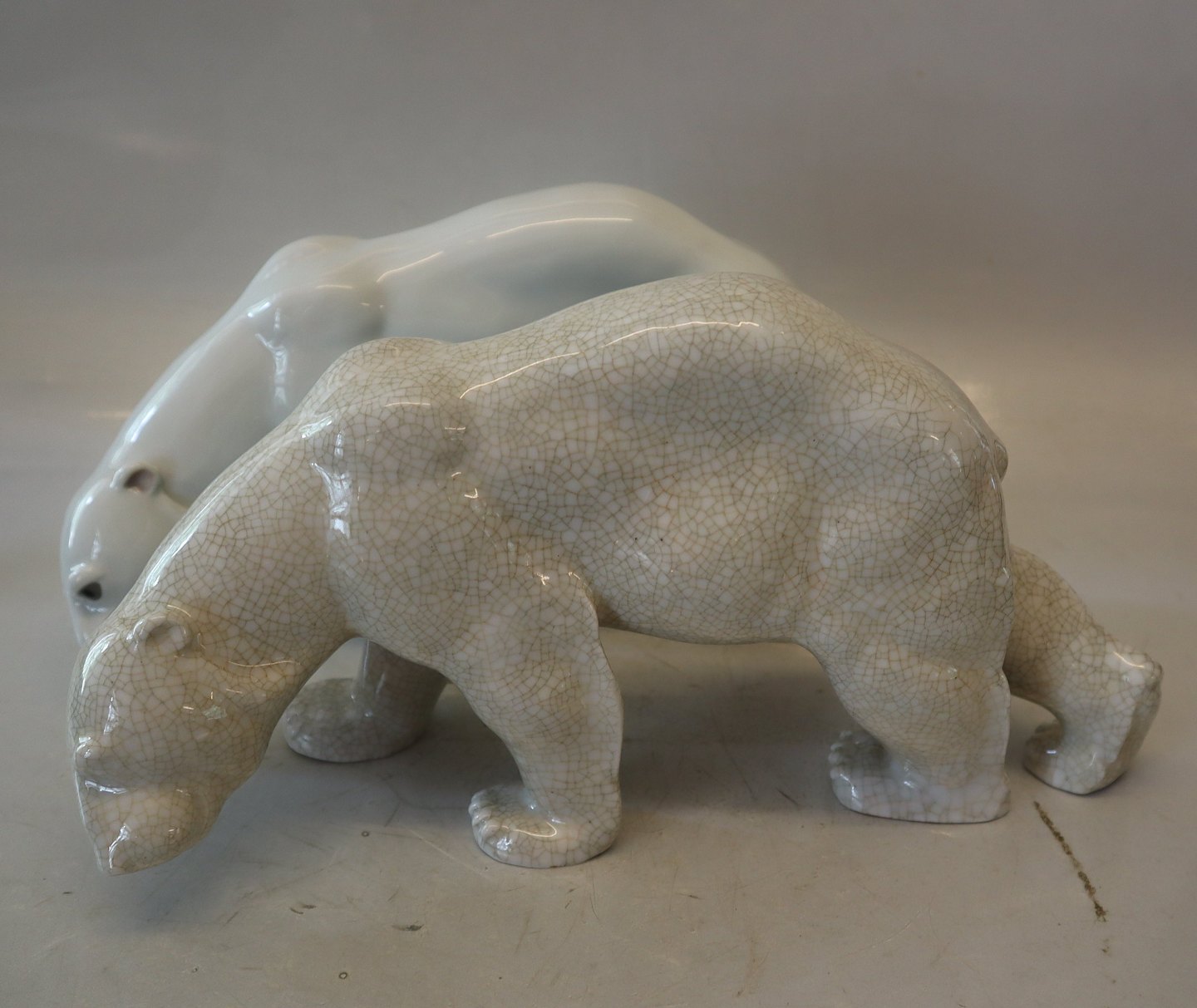 Heubach 19806 Isbjørn bøjet hoved 15 x 28 cm Tysk porcelænsfigur I fin og hel stand