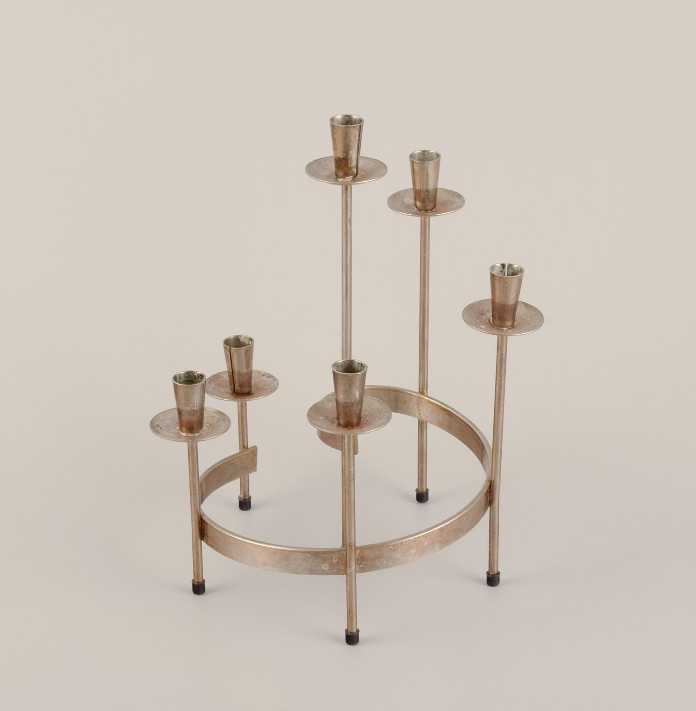 Gunnar Ander for Ystad Metall, Sverige. Et par lysestager i nysølv. Til seks lys.