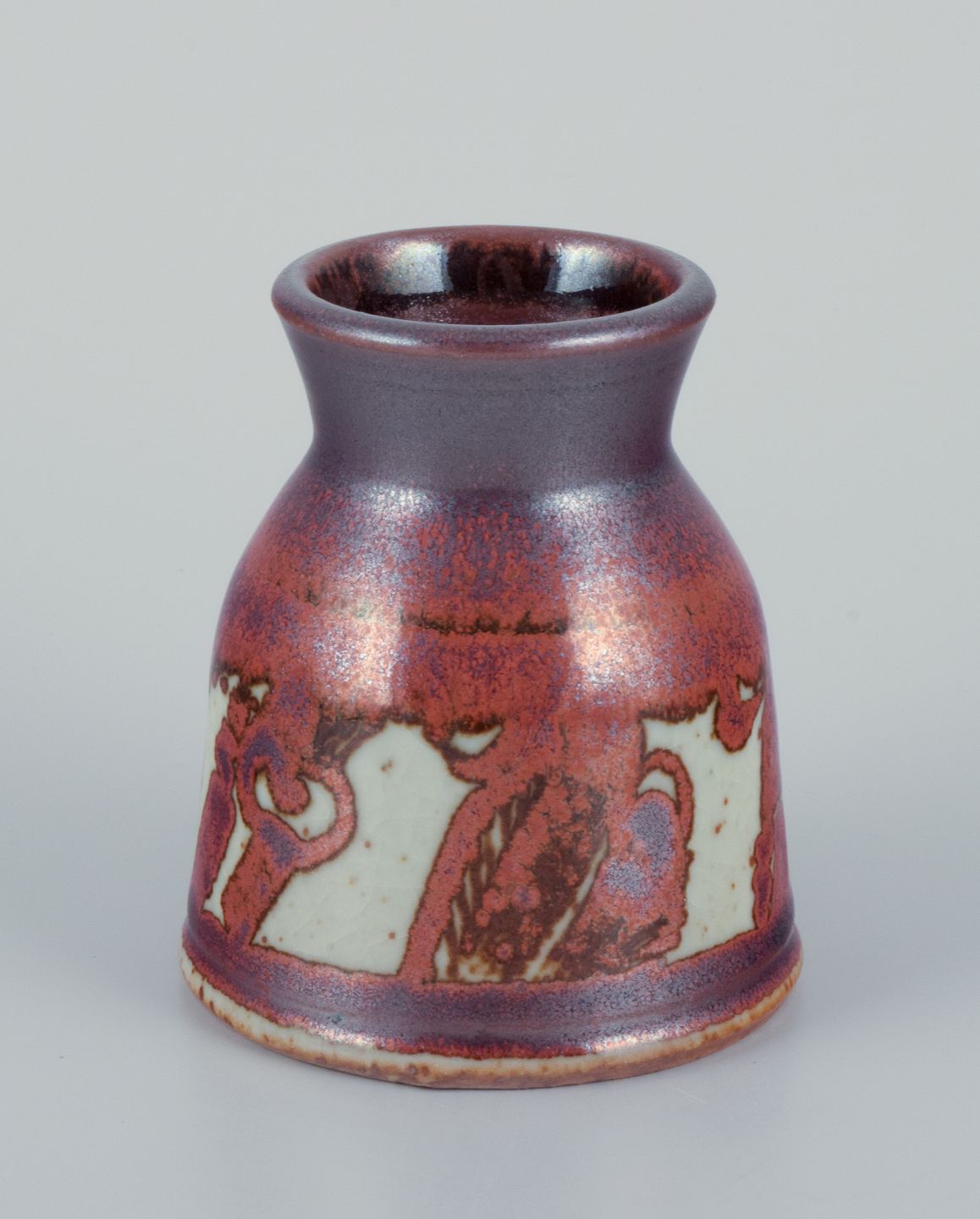 Den anden vase med glasur i brune nuancer. Abstrakte motiver.